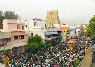 “Aadi Thapasu” is one of the important festivals of Gomathi amman celebrated in the Tamil month of Aadi in a grand scale. The story on this: Sri Gomathi Ambal did Thapas at Punnai kshetra and Lord Shiva gave Her darshan as Sankaranarayanaswamy on the Uthirada day in the month of Adi (July–August)