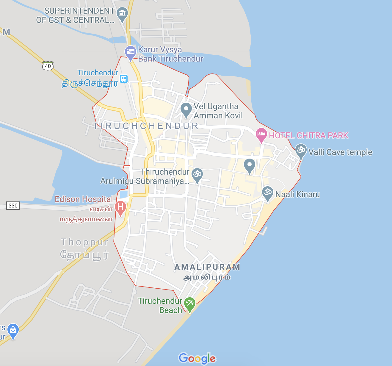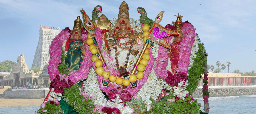 Tiruchendur is located in the far southeast of the subcontinent on the shores of the Bay of Bengal. If you want to free yourself from the consequence of karma and elevate yourself to the state of union with Paramatma, come to Tiruchendur and seek the Lotus Feet of Lord Muruga and take dip in Sea.